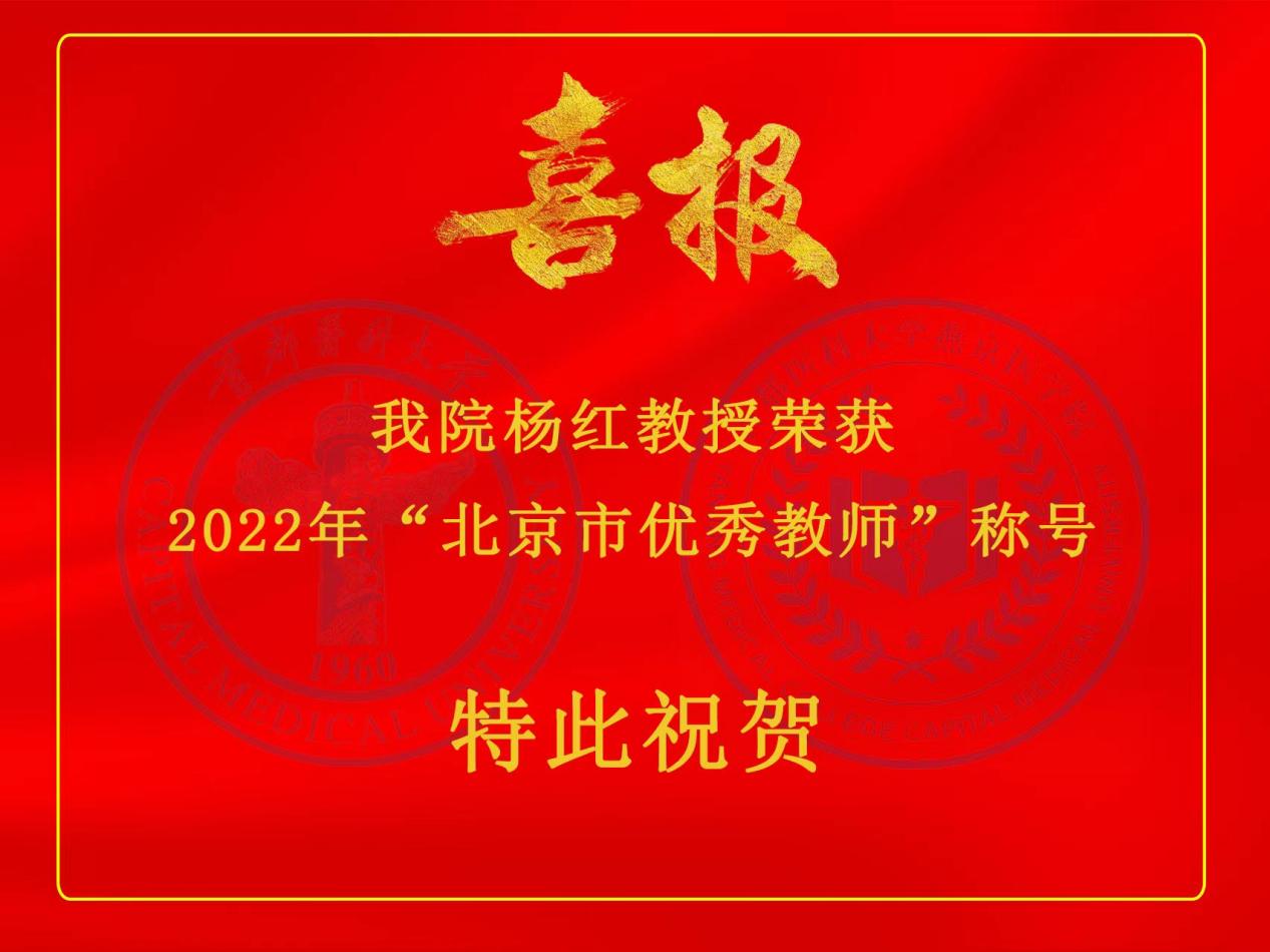 喜讯 | 我院杨红教授荣登2022年北京市优秀教师表彰名单