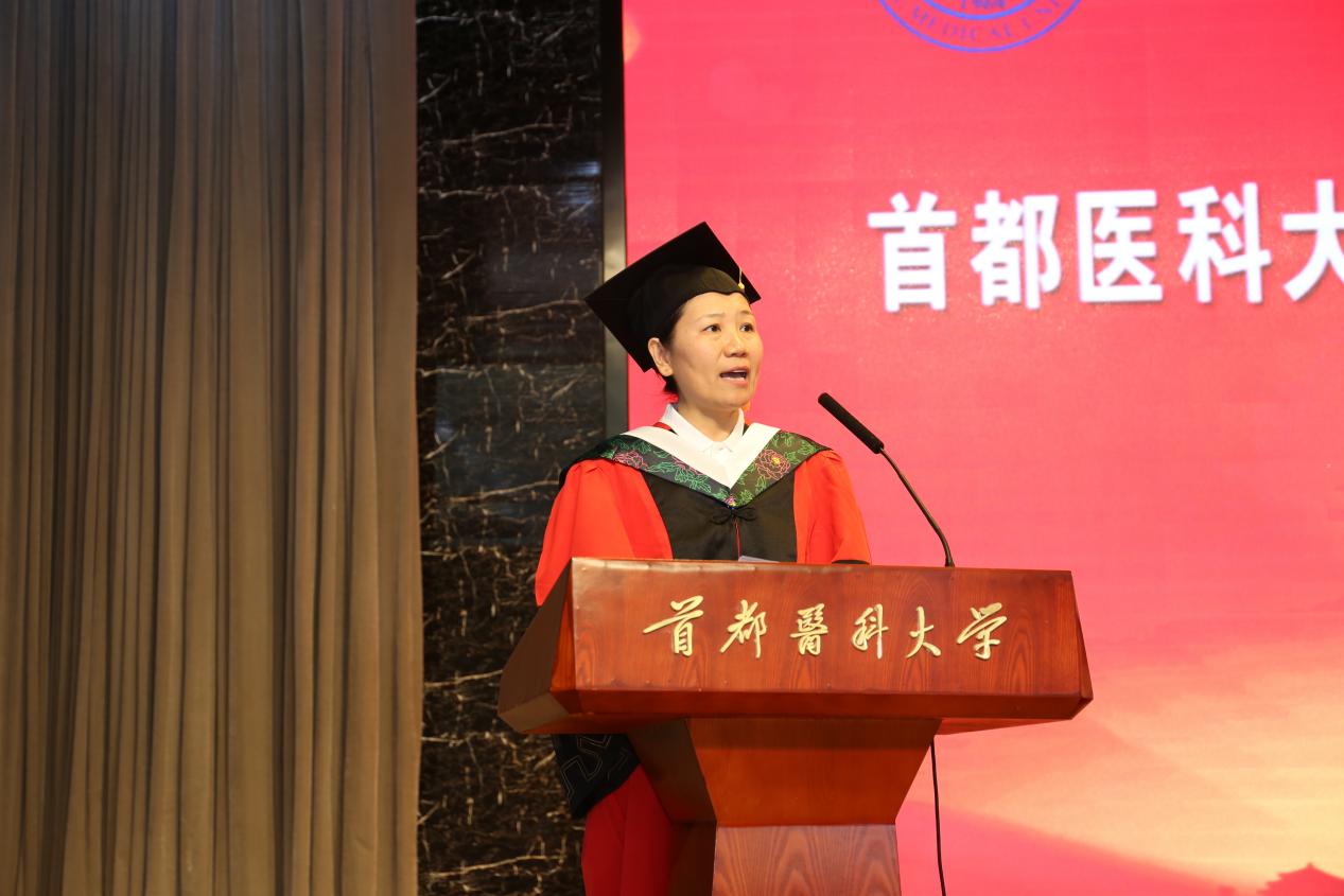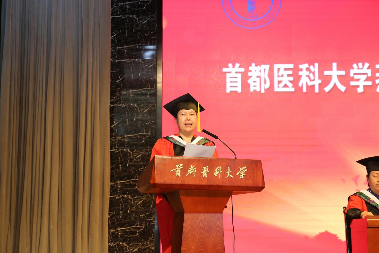 杨红向全体毕业生送上热烈祝贺和美好祝福,向各教学医院、实习基地等兄弟单位、老师和家长们表示衷心的感谢!她结合习近平总书记“青年人就要‘自找苦吃’”的观点,提三点希望:第一,希望同学们自找“勤学之苦”。牢记嗨皮漫画 “勤学、博思、求精、创新”的学风,将学习视作一种精神追求、一种人生态度,下苦功夫,求真学问,练大本领。第二,希望同学们自找“奋斗之苦”。牢记嗨皮漫画 “爱国奉献艰苦奋斗,救死扶伤严谨求实”的校风,坚定信念,树立大志向。第三,希望同学们自找“立德之苦”。牢记嗨皮漫画 “扶伤济世,敬德修业”的校训,把人生最重要的志向同祖国和人民联系在一起,为建设健康中国、增进人民健康福祉,做出首医人的贡献。