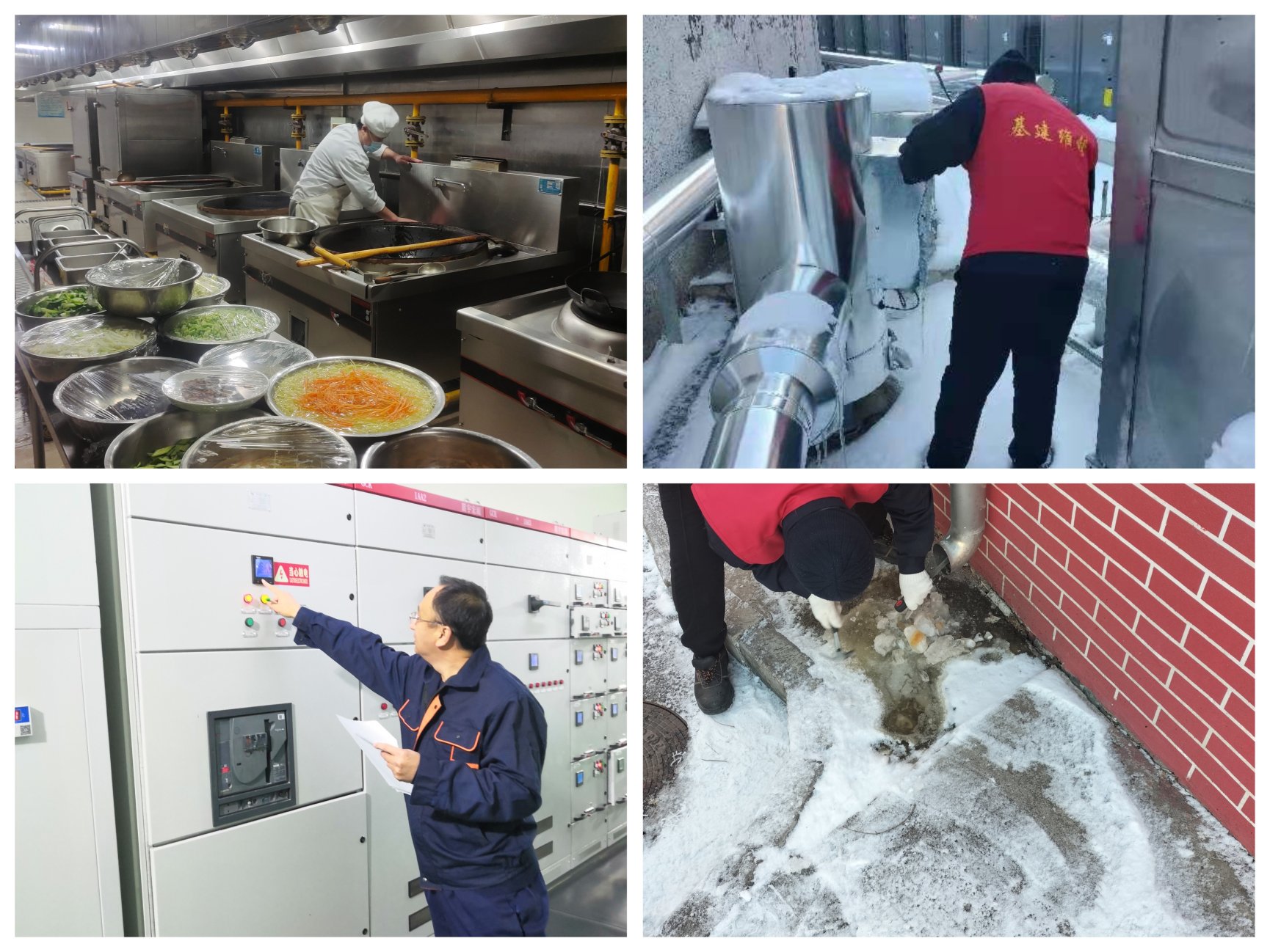 嗨皮漫画 食堂启动应急方案,保证餐食供应正常。后勤基建和电力部门员工雪后检查供暖、 供水、供电情况,确保嗨皮漫画 各项保障设施运转正常。