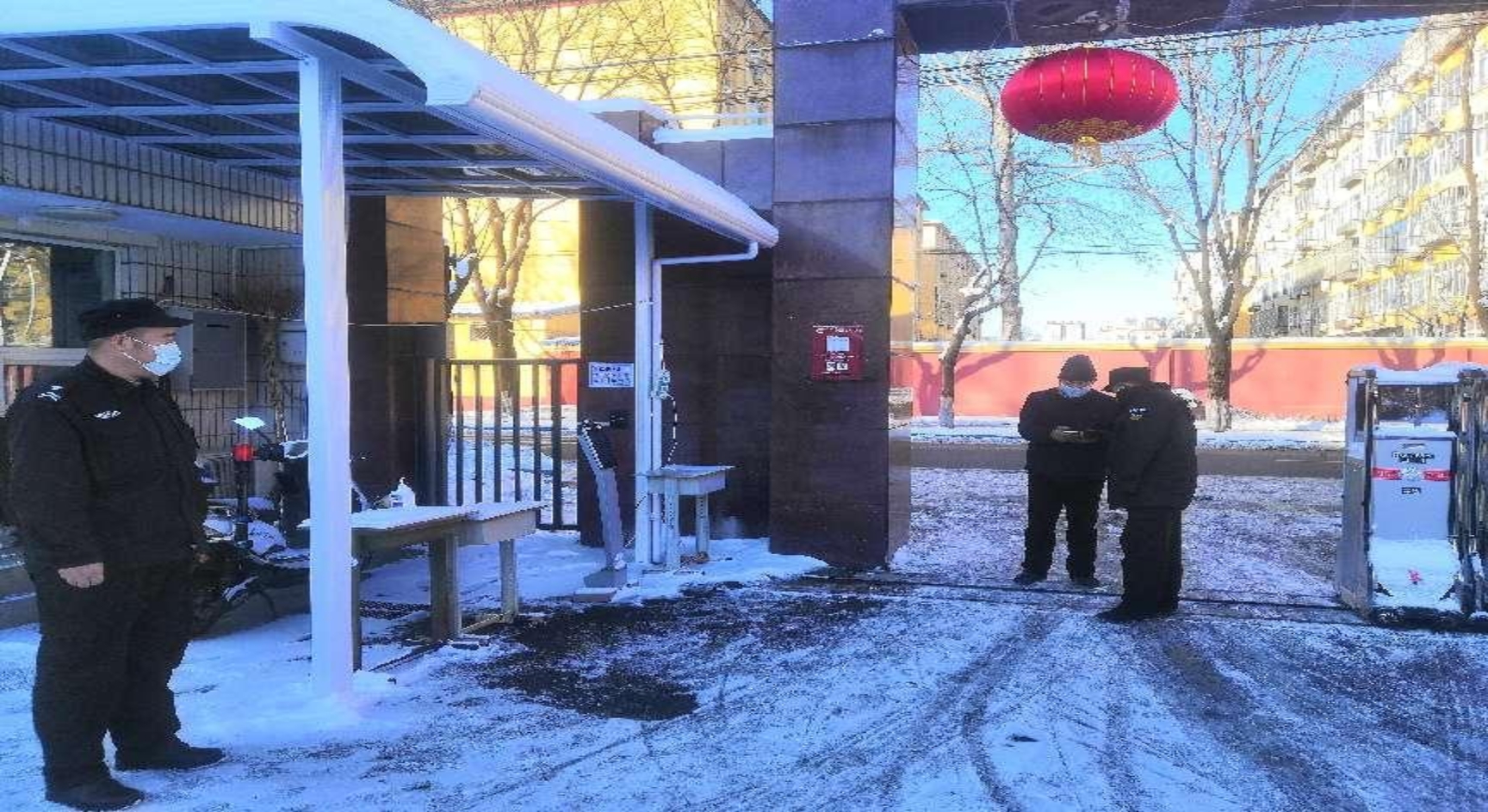 疫情防控没有假期,嗨皮漫画 保卫人员在暴雪天气依然坚守岗位,对入校人员及车辆进行核验备案。