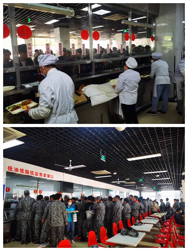 四是加强环境卫生工作。职工对餐厅、后厨进行无死角式大扫除,尽力为军训就餐提供舒适安全的就餐环境。