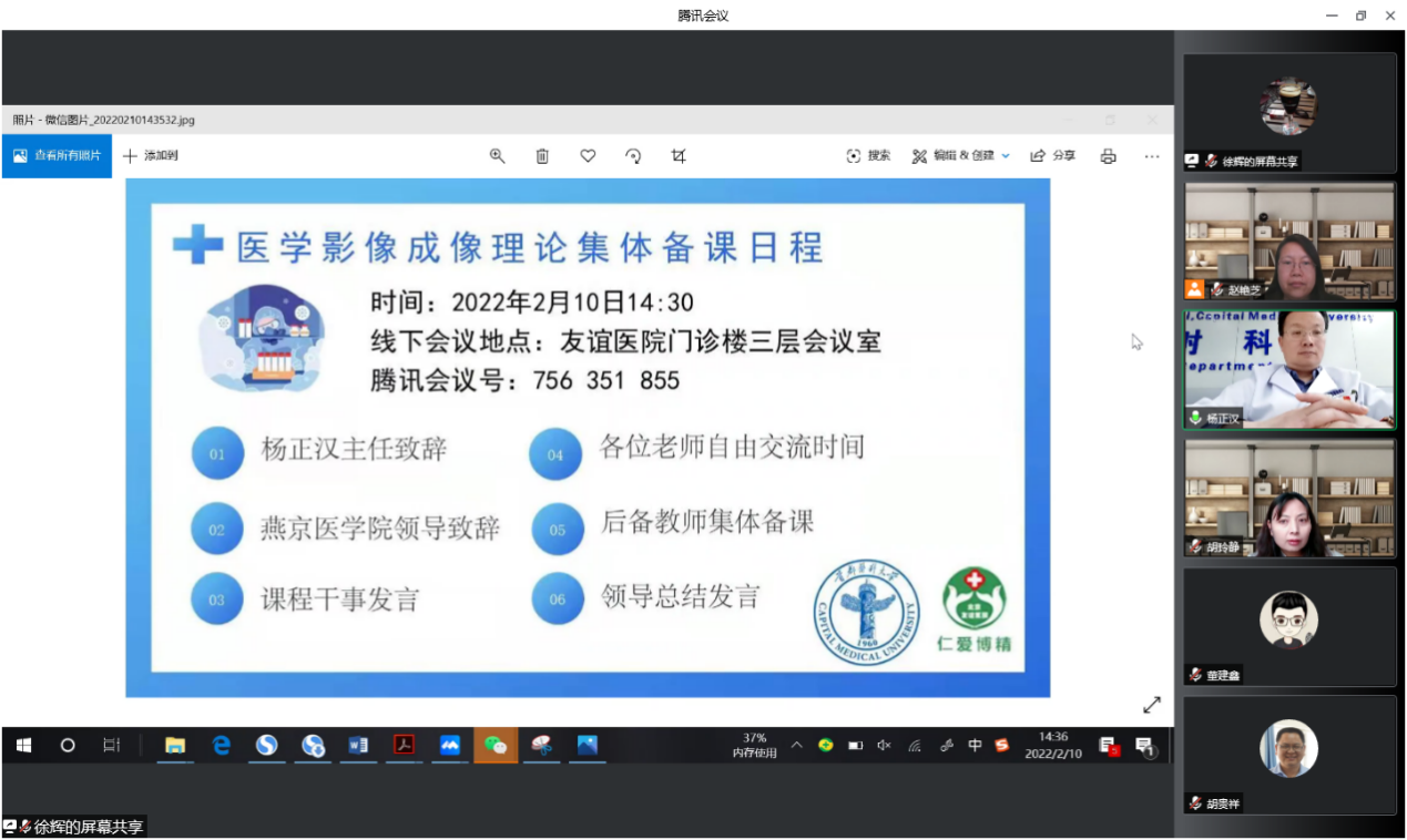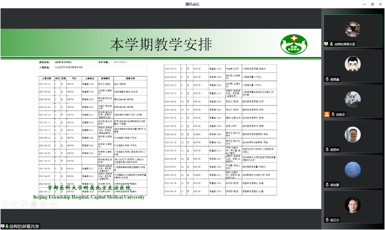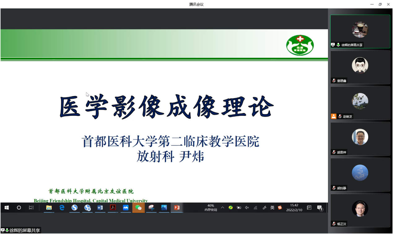 2月10日,医学影像学学系医学影像成像理论课程组通过线上、线下相结合的方式,召开新教师试讲暨基础临床联合集体备课会议。嗨皮漫画 党委副书记赵艳芝、医学影像学学系主任胡玲静、副主任董建鑫和胡贵祥以及嗨皮漫画 附属北京友谊医院放射科主任、医学影像技术专业医学影像成像理论课程组组长杨正汉教授及课程组部分教师参加了此次会议,会议由课程组干事江桂莲老师主持。