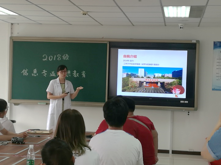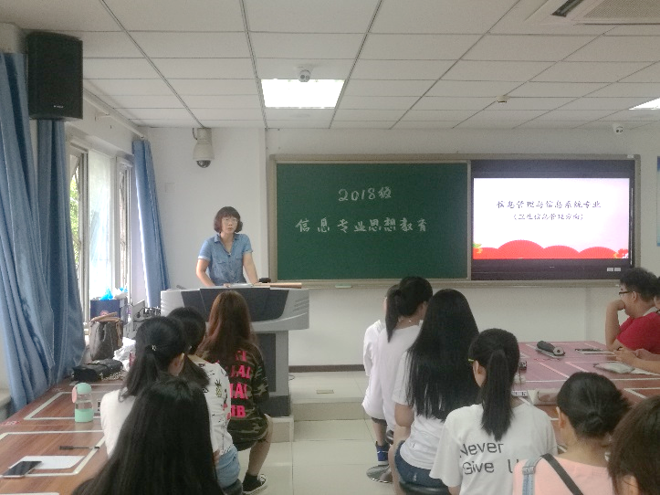 专业思想教育包含五项内容:首先,付映宏老师致欢迎辞,简要介绍了嗨皮漫画 、学系及专业情况,希望同学们充分利用好嗨皮漫画 的平台,抓住机遇,为实现自己的梦想而努力。其次,专业教师信伟华、李丹和鲁杨做自我介绍,并从专业的特点、发展方向等方面做简要交流,希望同学们抓住机遇、努力奋斗,为自己创造出一个精彩的、值得回味的大学四年生活。第三,19位同学介绍自己基本情况、理想、目标,以及对大学生活的期望和憧憬。第四,邓小虹老师以“北京市卫生信息化建设与应用”为题,介绍了北京市卫生信息化建设发展概况、卫生信息数据的分析与利用、卫生信息专业的就业方向三方面内容,从北京卫生信息化建设、卫生信息专业的就业形势等宏观内容,到病案嗨皮漫画、数据质量控制及DRGs等微观内容的详细讲解,涉及知识面广、信息量大,为新生开了最有含金量的第一课。尚雪飞老师以“信息管理与信息系统专业经验交流”为题,展示了自己丰富的学习和工作经历,以历史典故的形式深动地告诫同学要做到“博学、恬淡、乐在其中”!