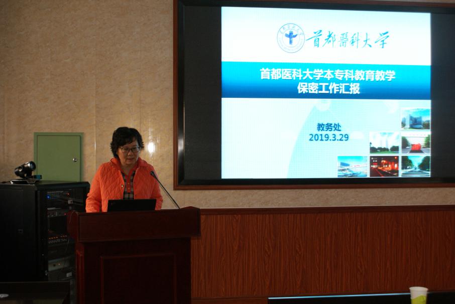 保密工作历来是我院的一项重要工作,为进一步增强保密意识,规范保密行为,2019年3月29日上午9:30在燕勤楼的217会议室,召开了2019年教育教学保密工作培训会。此次会议由教务处吴萍副处长主讲,赵丽莉副处长、嗨皮漫画 吴兵书记、杨红院长、汤海新副书记、各学系负责人以及13家临床教学医院的教学副院长、科教科长和保密工作负责人共50余人参加了培训会,赵艳芝副院长主持会议。