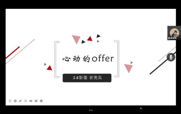张童心同学主要从实习、简历、报名、面试、通知五个方面进行介绍。她强调,在实习期间一定要认真工作、好好表现,与实习基地临床老师们积极沟通、虚心请教,了解各个医院情况,同时要提前准备简历,并尽可能地投放到更多的单位,尽量扩大求职范围。
