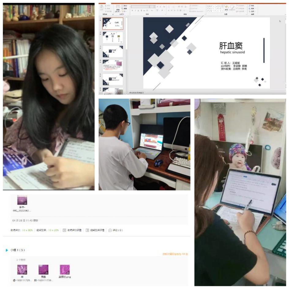 同学们上网课也毫不松懈,能约束自我,随时做笔记,认真完成每一项作业,小组学习共同努力,携手进步,完成PBL汇报。