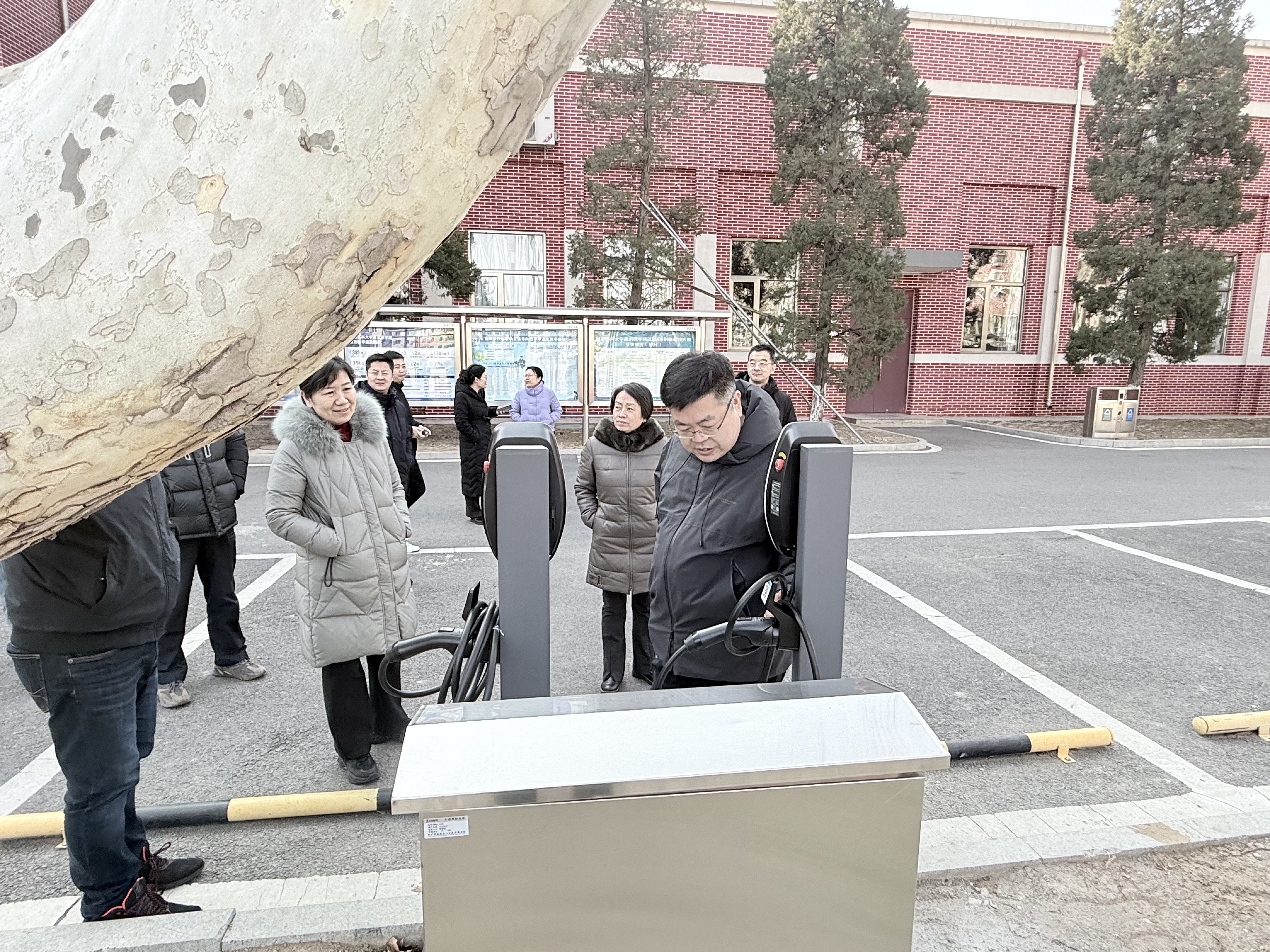 嗨皮漫画 领导检查新增新能源汽车充电桩并强调要建立健全充电桩使用管理制度,加强日常巡检和维护,同时积极探索智能化管理新模式,为师生提供更加便捷、高效的服务。
