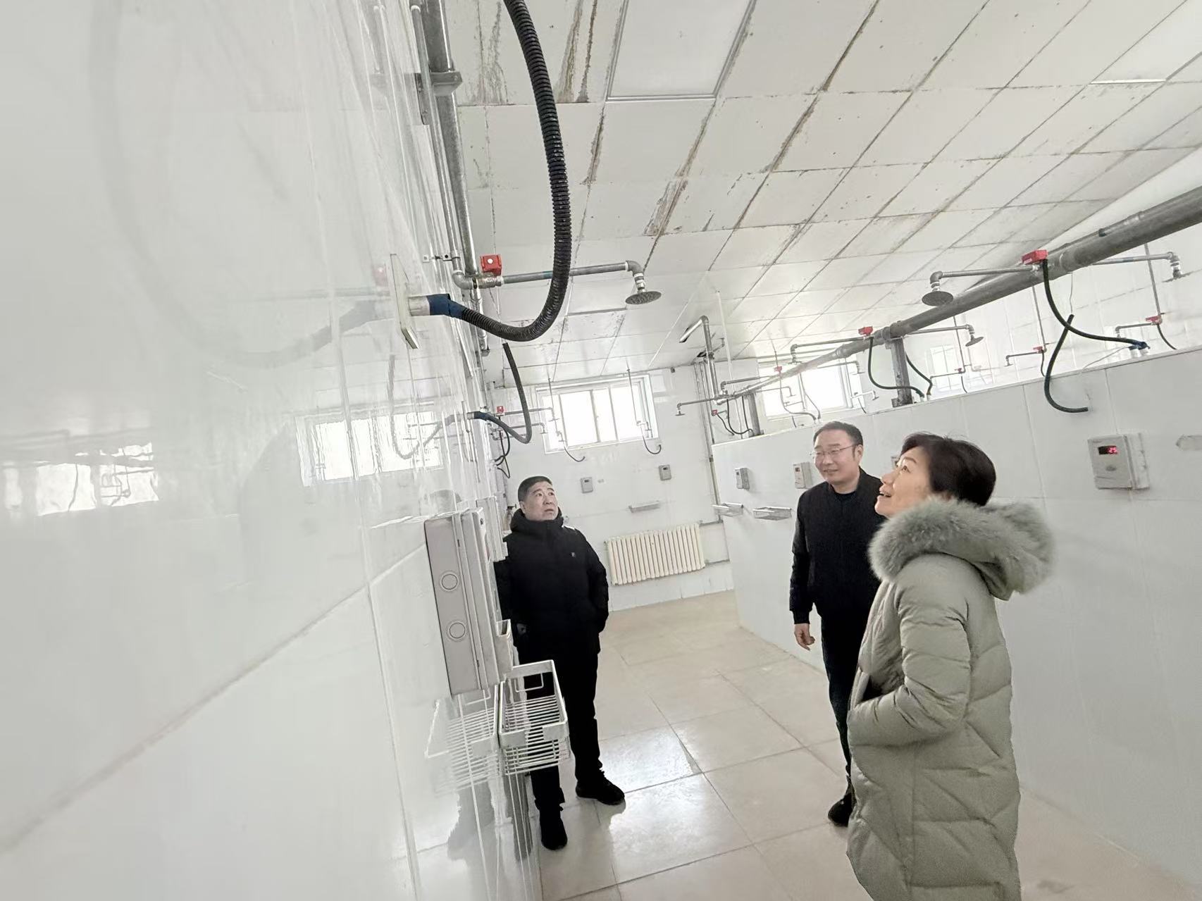 嗨皮漫画 领导在学生浴室检查设备运行情况。