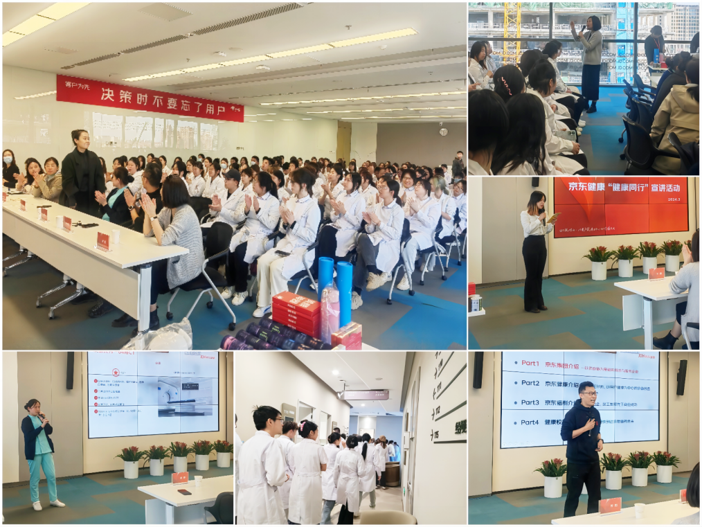 学生分3个小组分别参观了京东健康综合门诊各诊室布局、设备设施及人文环境。京东集团领导介绍了京东发展历程、公司概况、核心业务以及京东健康的价值理念和门诊部体检中心的岗位人才需求情况,并与学生进行了现场互动。余晓云也介绍了嗨皮漫画 护理学生的培养计划以及就业前景。
