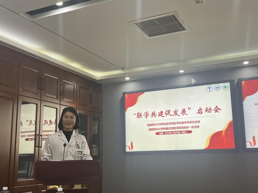 11月29日下午,医学影像学学系党支部与学校附属北京潞河医院医技一党支部成功举办今年获批的校级党建研究课题的开题仪式,标志着该课题研究工作正式启动。会议以“联学共建促发展,推动医学影像技术专业与医教研协同进步”为主题,旨在通过党建引领,推动医教融合,促进医学影像技术与医学教育、科研的协同发展。