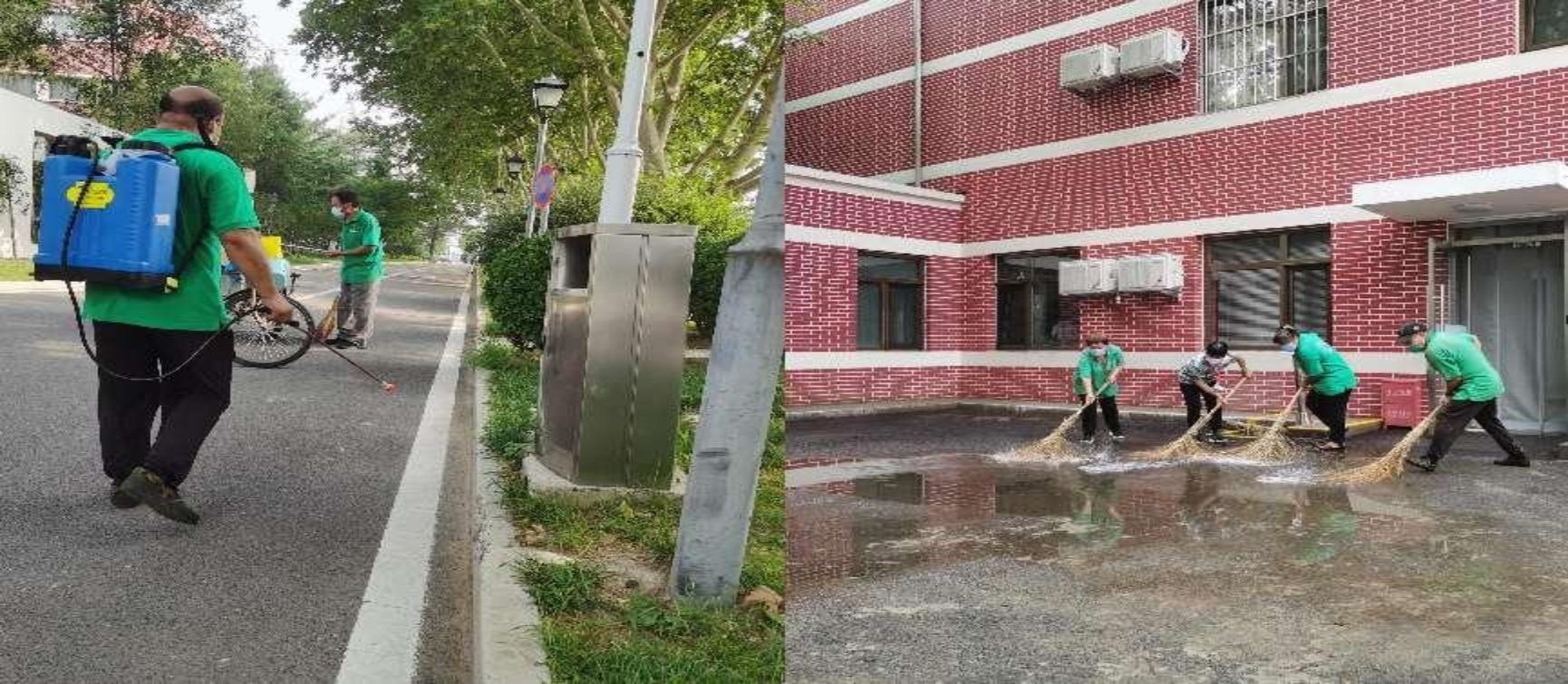 嗨皮漫画 保洁人员每天对校园环境进行彻底卫生清洁和消杀。