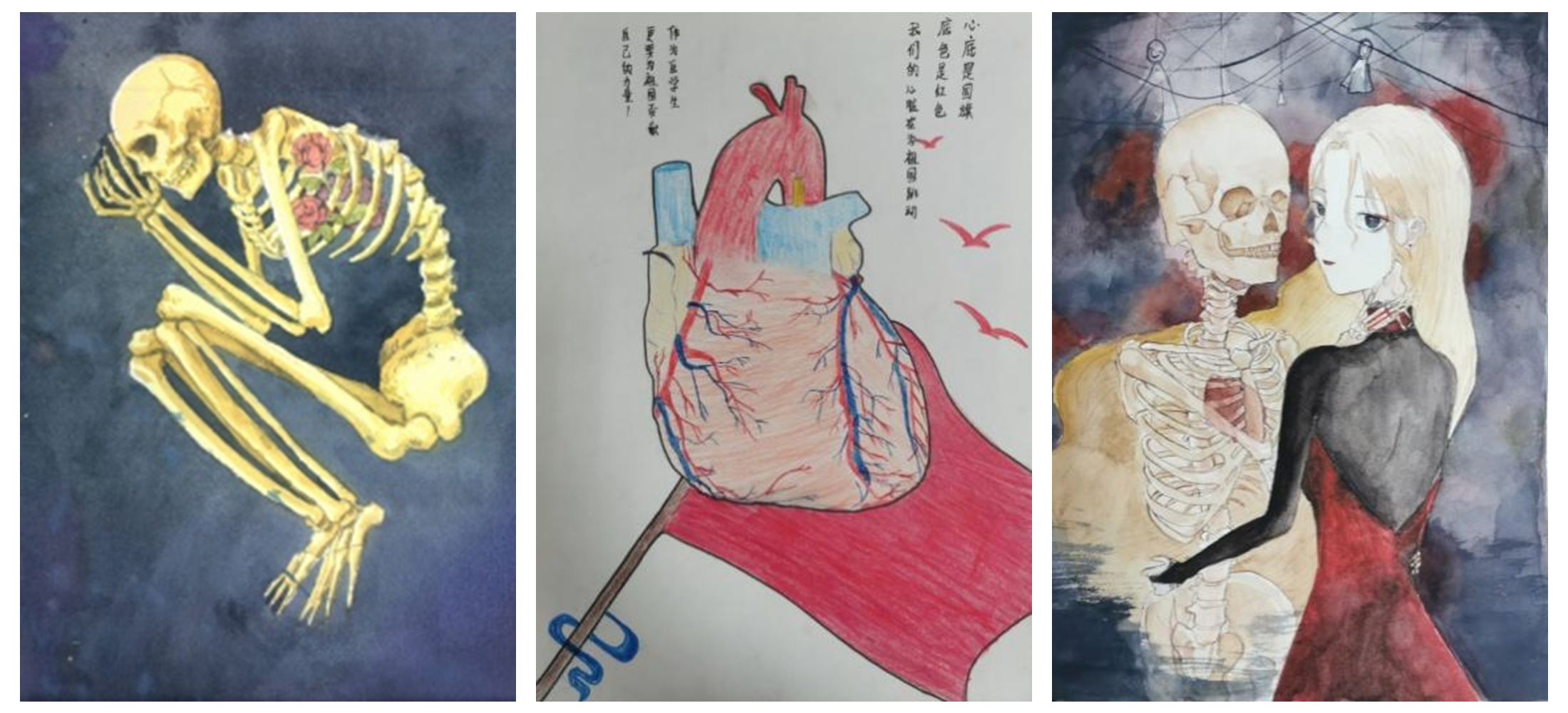 学生将复杂的人体解剖结构与艺术创作相结合,创作出一幅幅美轮美奂的画作。此活动同时也在一定程度上激发学生的学习兴趣,带动学生深入钻研学科领域,让学生了解并爱上医学!