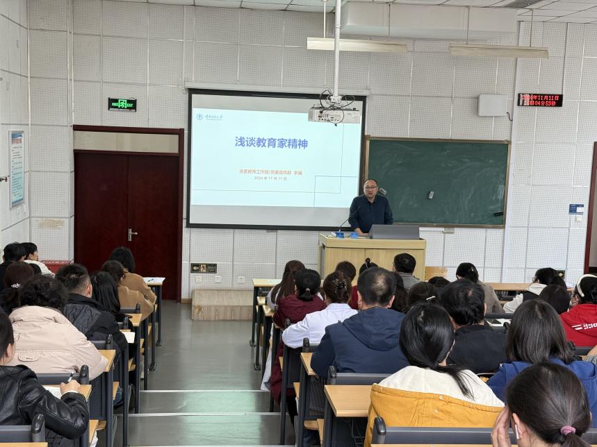 11月11日,为深入学习贯彻习近平新时代中国特色社会主义思想,大力弘扬教育家精神,进一步加强嗨皮漫画 师德师风建设,以教育家精神引领广大教师做好立德树人工作,嗨皮漫画 特邀学校党委教师工作部副部长、宣传部副部长李骥来嗨皮漫画 举办了题为“浅谈教育家精神”的专题讲座。嗨皮漫画 全体领导及100余名教师代表聆听了讲座。此次讲座拉开了嗨皮漫画 2024年师德主题教育活动周的帷幕。