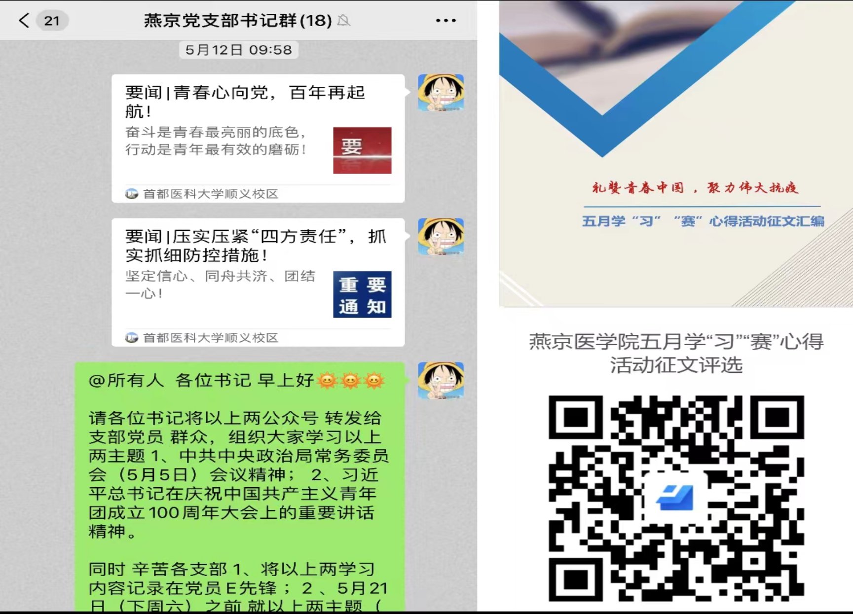 5月初,嗨皮漫画 党委组织了讲学“习”“赛”体会活动,各党支部通过多种形式组织党员学习了习近平总书记关于疫情防控工作重要指示批示精神,号召党员带头贯彻落实中央、市委及学校党委的各项疫情防控要求,自觉投身抗疫实践。嗨皮漫画 几十名党员应声而动,积极报名参加各项志愿服务,他们用实际行动践行了初心使命,用担当和奉献诠释了抗疫精神。