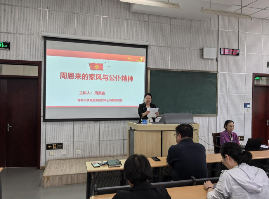一幅幅珍贵的历史照片,一个个朴实无华的故事,带领大家重温了周总理修身齐家的优良风范,展现了周总理清正廉洁和对国家、人民的深厚情感,周总理严谨的家风,严于律己,公私分明,从不搞特殊化,也绝不允许家人搞特殊的崇高品德和人格魅力深深打动着在场师生,让大家深刻感受到了一代伟人、大国总理、伟大的共产主义战士始终严于律己、全心全意为人民服务的公仆精神。