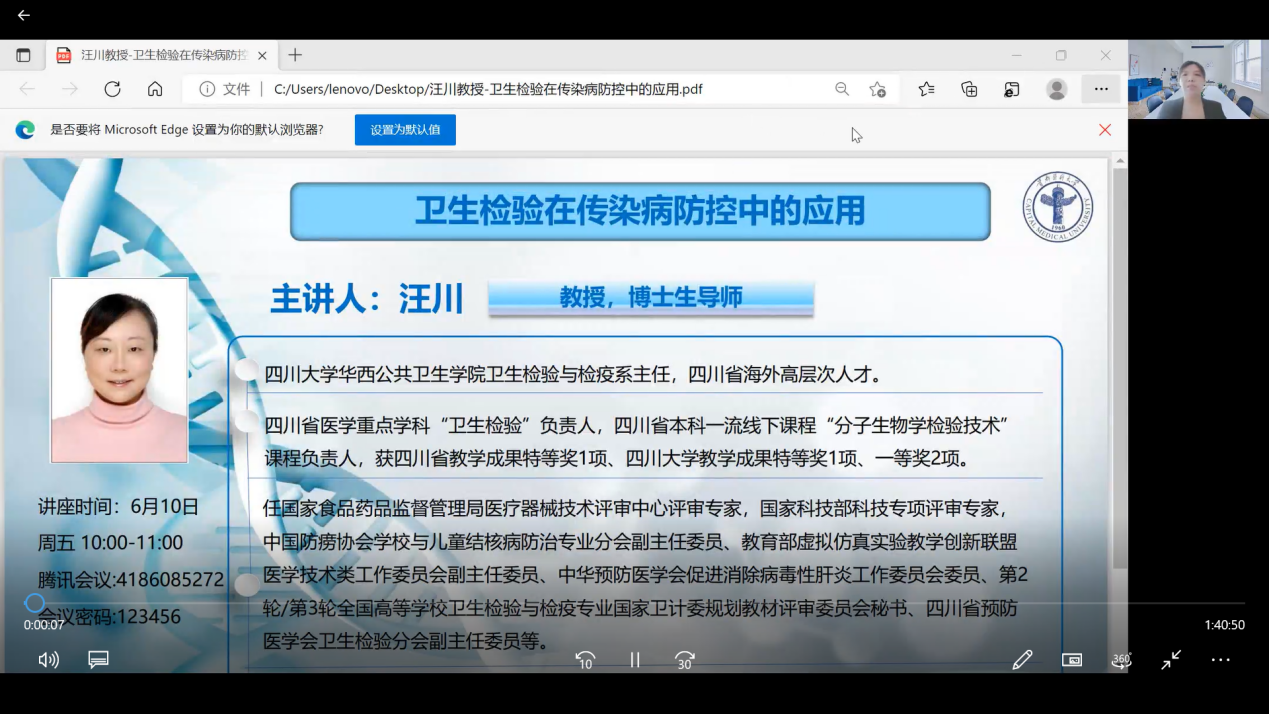 6月10日,四川大学华西公共卫生嗨皮漫画 卫生检验与检疫系主任、四川省医学重点学科“卫生检验”负责人汪川教授应邀为检验学学系师生举办了主题为“卫生检验在传染病防控中的应用”的专家讲座。讲座由检验学学系主任高春艳老师主持,检验学学系全体师生及嗨皮漫画 其他教师共计100余人聆听了讲座。