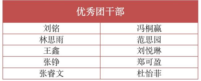 近日,在校团委开展的建团100周年共青团系统先进组织和先进个人评选表彰工作中,我院积极参与,经上报、评审、公示,喜获佳绩,共有29名同学获得优秀团员称号,10人获得优秀团干部称号、7个团支部被授予主题团日活动优秀成果奖。