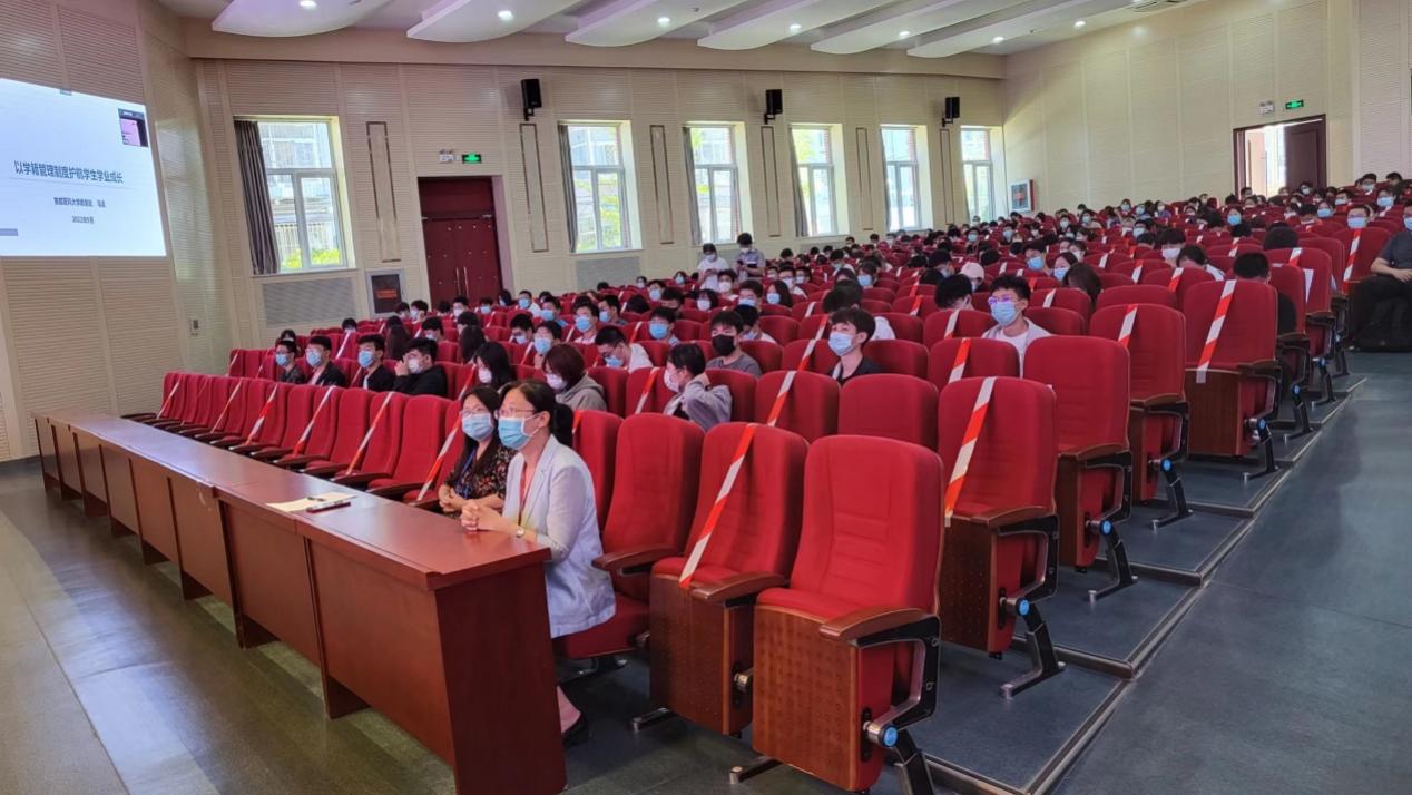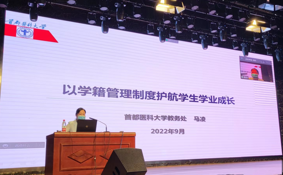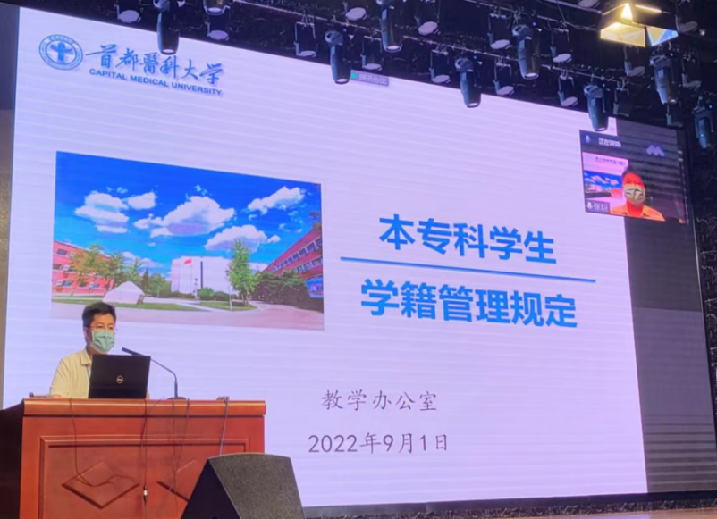 马凌副处长首先对新同学们的到来表示热烈欢迎,并从学生学籍管理规定的概述及重要性两部分进行了讲解。马老师指出,学业是大学生活的重点,为此,她着重以学业成绩为例给新生讲解了遵守学籍管理规定的重要性和必要性。面对高速发展的社会,她建议同学们端正自身心态,奋斗进取,同时加强身心锻炼,保持健康的学习状态,为今后顺利毕业、就业打好基础,实现自己的医学梦!