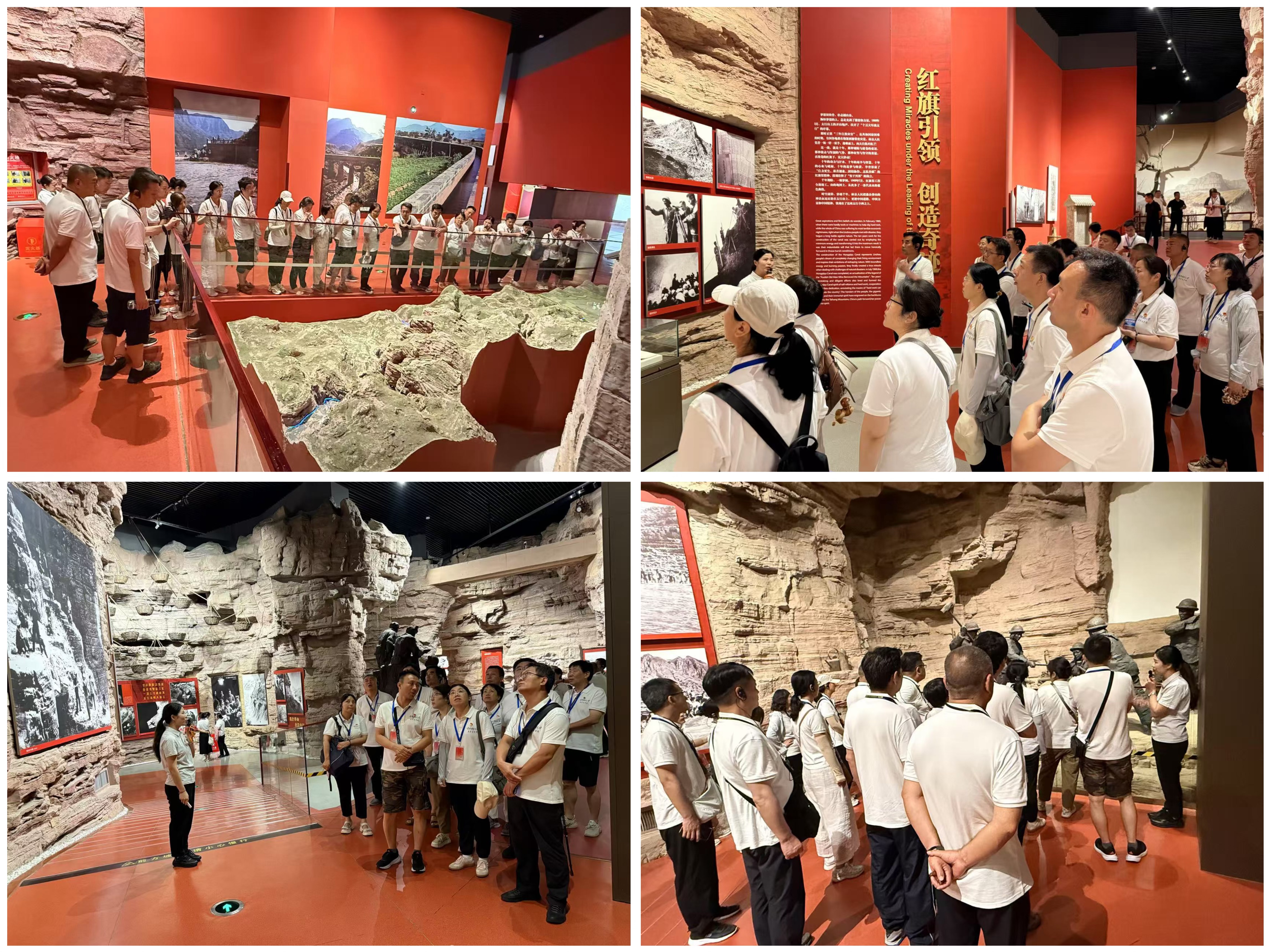 从红旗渠的枢纽工程“分水闸”到总干渠的咽喉工程“青年洞”,大家被这座由300余名青年,历时17个月凿通的616米隧洞深深震撼。沿途经过的鹰嘴山绝壁、一线天险段等工程遗址,生动再现了当年林县人民“重新安排林县河山”的壮阔场景。站在形如“红飘带”的渠岸上,望着穿山越岭的人工天河,大家深刻体会到红旗渠不仅是水利工程的奇迹,更是共产党人初心使命的丰碑。