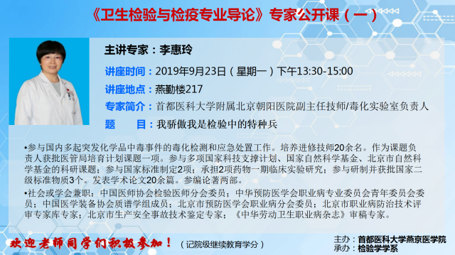 李惠玲主任《卫生检验与检疫专业导论》专家公开课(一)的通知