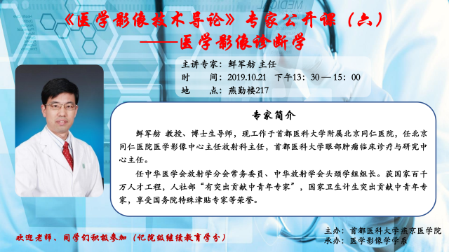 鲜军舫主任《医学影像技术导论》专家公开课(六)的通知