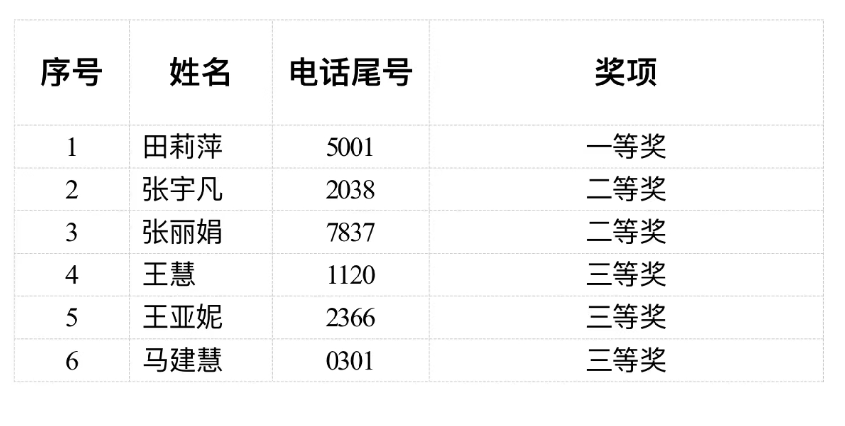 备注:除了一、二、三等奖以外,其他所有参与者皆获得参与奖。