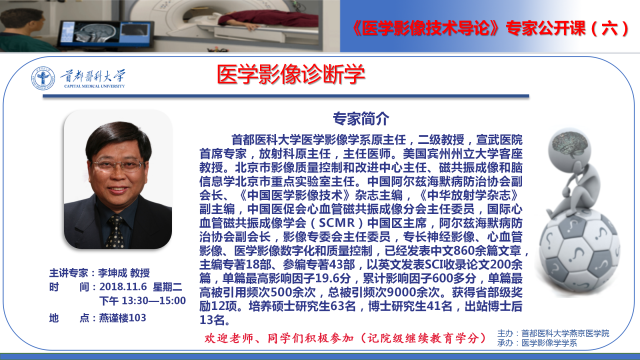 李坤成教授医学影像技术导论讲座通知